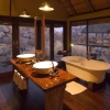 There are impressive views from the main lounge, bar and dining areas, as they are situated close to the top of a hill, part of the foothills of the unpronounceable Ondundozonanandana Range. There is also an inviting pool to cool off in the heat of the day. Meals are either served in the main dining area under thatch with a view over the camp's waterhole, or on the dining deck under the stars. Ongava Lodge was listed on the Condé Naste Traveller's Gold Reserve List for 2005. “These camps are on a private 75,000 acre game preserve adjoining the Etosha National Park.