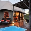 Elephant Camp is one of our favorite properties. The canvas walls are the only reason you know it’s tented. It’s pure luxury. With an emphasis on exclusivity, the luxury tented suites all have private decks and plunge pools. The exceptionally large suites are all equipped with indoor and outdoor showers, huge baths, private lounges, mini bar and tea/coffee stations, overhead fans plus air conditioning and are all mosquito proofed. The camp is situated only 10 minutes from Victoria Falls in a private concession within the Victoria Falls National Park. The Elephant Camp overlooks a waterhole that is fed by natural streams in the rainy season that rush down to meet the Masuwe River, and the Zambezi gorges below the Falls. Walks, elephant back Safaris, along with a variety of activities such as helicopter rides; sunset and breakfast cruises are available.