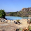 Camp Amalinda is adjacent to Matopos National Park. The Park is known for their white rhino. Here you cruise the bush roads looking foe rhino spore. Once found you make the final stalk on foot. And of course you are accompanied by an experienced game ranger. It’s a thrill! Other plains game species can be found in the park including sable. In addition there is the grave site of Cecil John Rhodes at Worlds View. Remember it was he who founded the Rhodes Scholarships. The Park is also rich in Bushman rock art. The camp is tucked into massive granite boulders. The chalets are spacious, well appointed, and incorporate the rocks as room features. Sitting around the massive teak table savoring delicious food is a real treat.